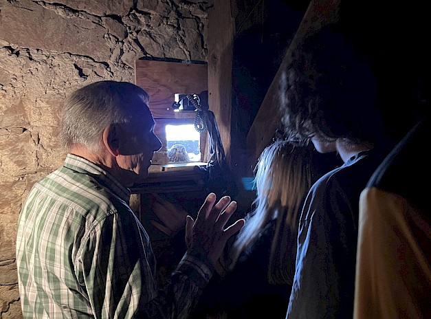 Auch die Turmfalken schätzen das Gelände und kommen seit Jahren zum Brüten, wie wir von Br. Uwe gelernt haben. Da die Jungen gerade ausgeschlüpft waren, hat er uns angeboten sie anzuschauen. Wir kletterten auf den Dachboden, und vom präparierten Brutkasten aus hatten wir freien Blick auf die Turmfalken-Mama, die uns interessiert beobachtete, und auf die hübschen Turmfalken-Jungen. Kinder und Erwachsene waren verzückt von diesem Anblick.